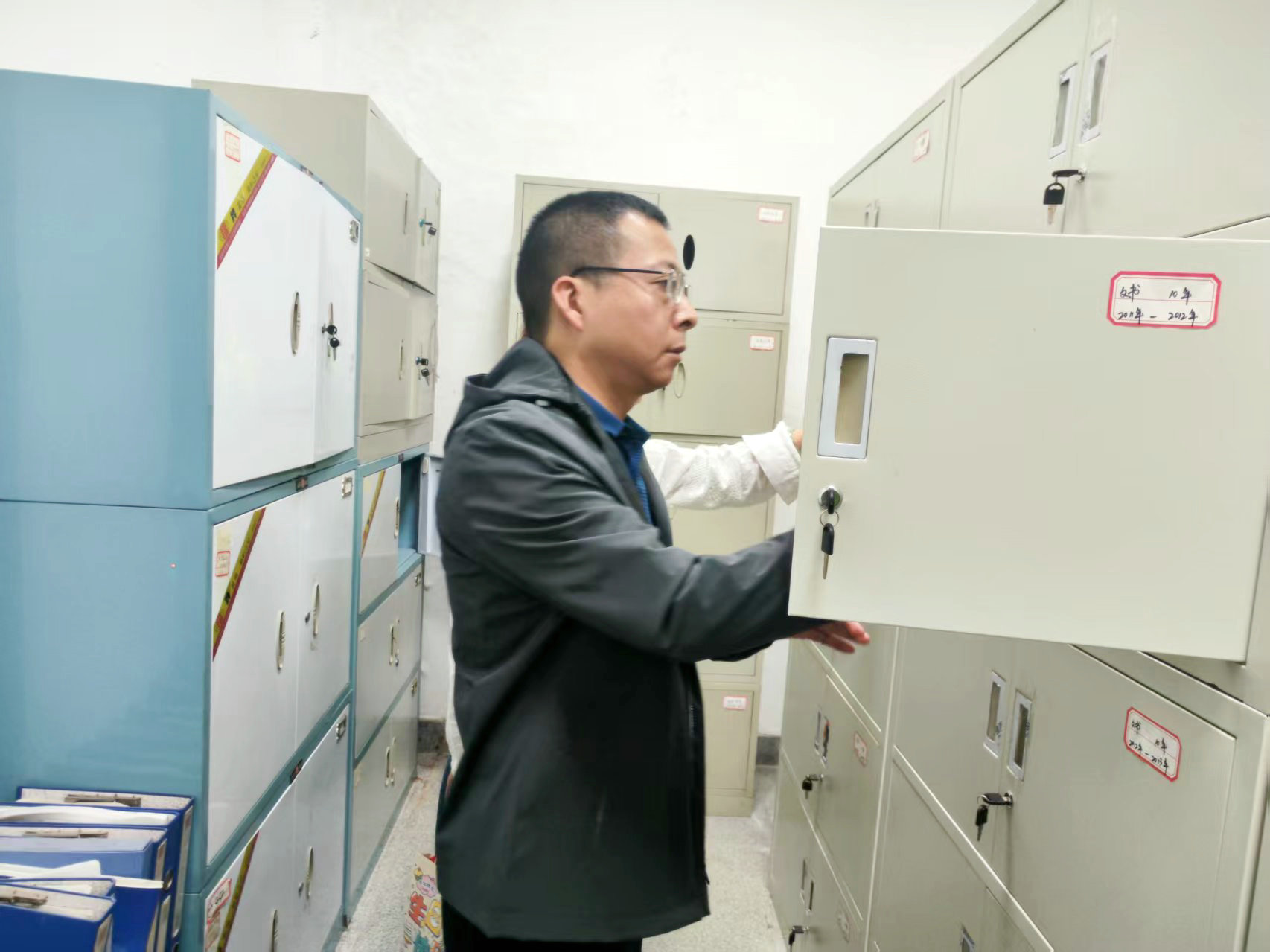 調(diào)研現(xiàn)場,朱亞成一行先后查看了檔案室基礎(chǔ)設(shè)施建設(shè)、安全防護和視頻監(jiān)控等相關(guān)情況,重點抽查了各類檔案的歸檔、存儲、保管及查閱使用情況,全面掌握當前檔案管理工作的實際現(xiàn)狀。