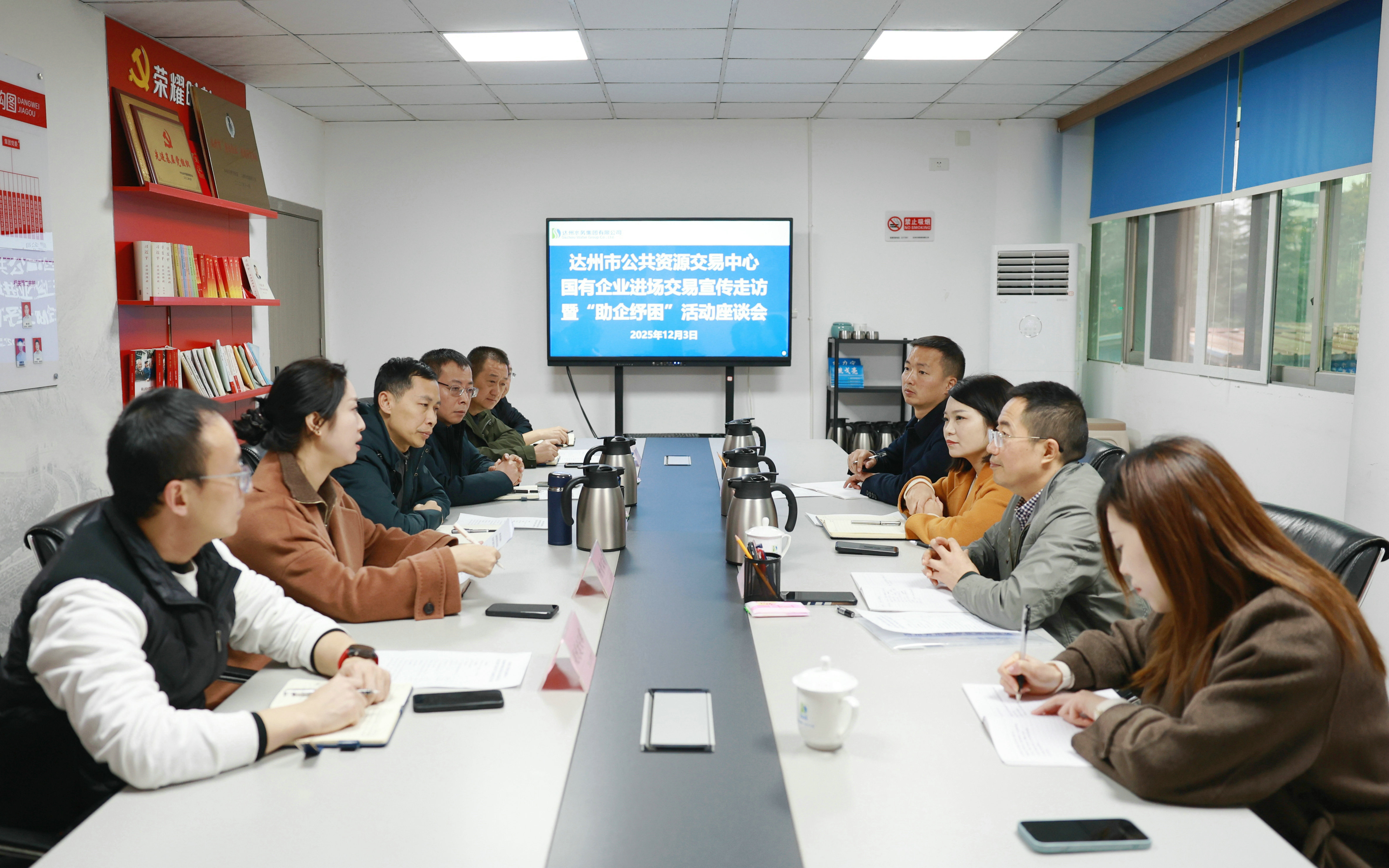 12月3日上午,市公共資源交易服務中心副主任陳曉云帶隊赴達州水務集團開展國有企業(yè)進場交易宣傳走訪暨“助企紓困”活動座談會,集團黨委委員、副總經(jīng)理楊力寧,黨委委員、副總經(jīng)理、財務總監(jiān)朱亞成和集團相關部門參加。