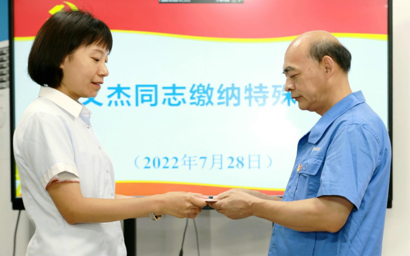 得到愛,分享愛。楊義杰同志的無私奉獻精神受到了集團公司黨委的高度關(guān)注,也得到了上級黨委授予的各項榮譽。每年春節(jié)前,公司黨委均要慰問他這位省勞模,為他送去慰問金。他在感恩之時,也牢記自己的黨員身份,多次向黨組織繳納特殊黨費,表達對黨組織的感激之情。2014年6月17日,他繳納特殊黨費1000元,要求不作宣傳,不要讓同事們知道。2017年10月,他又向黨組織繳納特殊黨費1000元,以迎接黨的十九大隆重召開。去年,為迎接黨的二十大勝利召開,他再次交納1000元大額黨費,以表達他對黨的無限忠誠和熱愛。