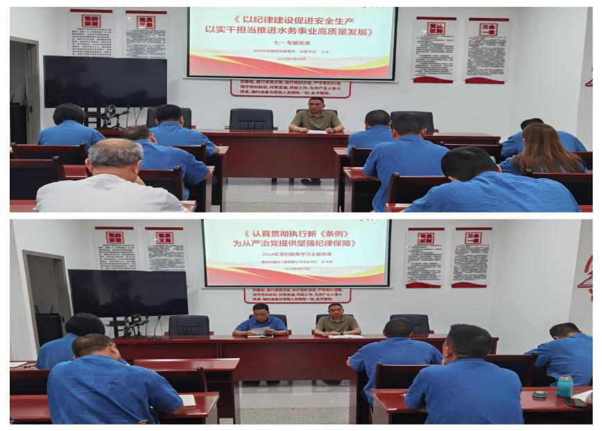 強(qiáng)黨性,講好一黨專題黨課。 一堂生動(dòng)的黨課,是一場深刻的理論教育、一次初心的凈化洗禮。6月26日,支部聯(lián)系領(lǐng)導(dǎo)集團(tuán)黨委委員、紀(jì)委書記王宇為支部全體黨員上了一堂主題為“以紀(jì)律建設(shè)促進(jìn)安全生產(chǎn) 以實(shí)干擔(dān)當(dāng)推進(jìn)水務(wù)事業(yè)高質(zhì)量發(fā)展”的黨課,并對(duì)全體黨員同志如何嚴(yán)格遵守黨規(guī)黨紀(jì)提出更高的要求。支部書記朱玉峰詳細(xì)解析了《中國共產(chǎn)黨紀(jì)律處分條例》中的“六大紀(jì)律”的相關(guān)內(nèi)容,讓全體黨員對(duì)“六大紀(jì)律”有了更清醒的認(rèn)識(shí),黨性素養(yǎng)被進(jìn)一步錘煉。