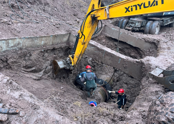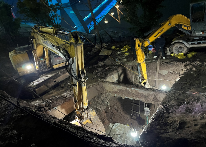 險(xiǎn)情發(fā)生后,水務(wù)集團(tuán)黨委高度重視,黨委書記、董事長盧輝帶隊(duì)奔赴搶險(xiǎn)現(xiàn)場指揮調(diào)度,要求惠泉公司立即組織搶修,盡快恢復(fù)管網(wǎng)運(yùn)行,盡最大努力減少污水外溢,集團(tuán)安全環(huán)保部、規(guī)劃建設(shè)部、惠潤達(dá)公司到場指導(dǎo)協(xié)助?;萑绢I(lǐng)導(dǎo)班子立即召開緊急現(xiàn)場會(huì),連夜組織調(diào)度搶險(xiǎn)人員和設(shè)備,出動(dòng)搶險(xiǎn)人員100余人次,挖掘機(jī)、吊車、多功能搶險(xiǎn)車等工程機(jī)械10余臺(tái),合理調(diào)配人手,組建臨時(shí)班組,采取人機(jī)輪班,就地休息的方式,在確保安全的情況下,迅速開展搶險(xiǎn)工作。