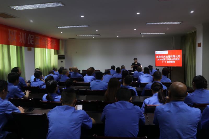 鑒于當(dāng)前環(huán)保新形式需要,為努力打造一支高素質(zhì)、高效率、高執(zhí)行力的團(tuán)隊(duì),使公司在激烈的市場(chǎng)競(jìng)爭(zhēng)中展現(xiàn)出較強(qiáng)的生命力和競(jìng)爭(zhēng)力,惠泉公司本年度第二次全員培訓(xùn)在鮮家壩污水廠會(huì)議室開班。集團(tuán)公司副總、惠泉公司執(zhí)行董事李虹霖出席開班動(dòng)員會(huì)。