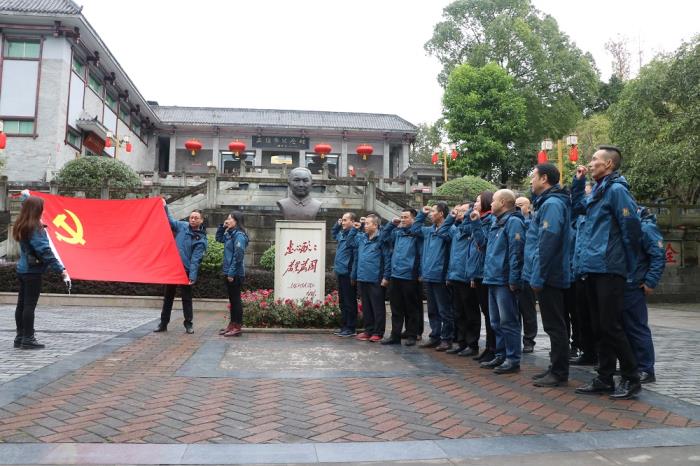 參觀完畢,全體黨員聚集在王維舟塑像前,在鮮艷的黨旗前,大家莊嚴(yán)肅立,舉起右手,在支部宣傳委員李燕群的領(lǐng)誓下,重溫了入黨誓詞。隨后,全體黨員在紀(jì)念館前合影留念。